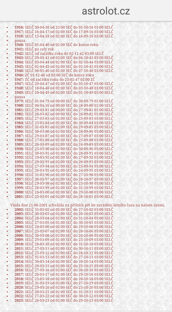 Začátky a konce letních časů
